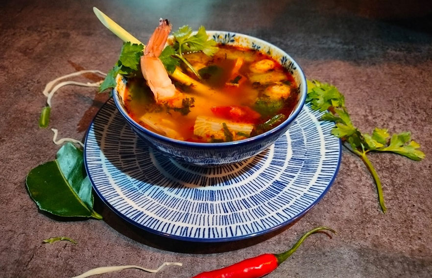 When you crave for some light snack, this grilled prawns dish would be a good choice. The source is fantastic and you can add some lime juice for another level..
